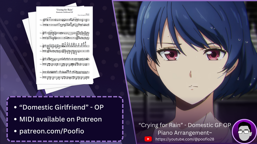 "Crying for Rain" - Domestic Girlfriend OP Piano Arrangement By Poofio.