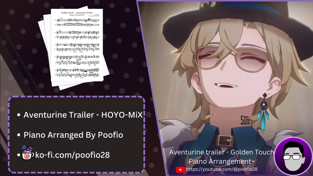 - This is sheet music and MIDI for my piano arrangement of 'Aventurine Trailer : golden Touch' originally composed by 'HOYO-MiX' (2024).
