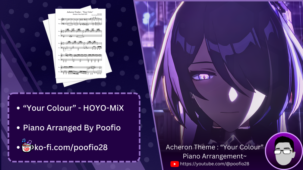 - This is sheet music for my piano arrangement of 'Acheron Trailer : Your Colour' originally composed by 'HOYO-MiX' (2024).